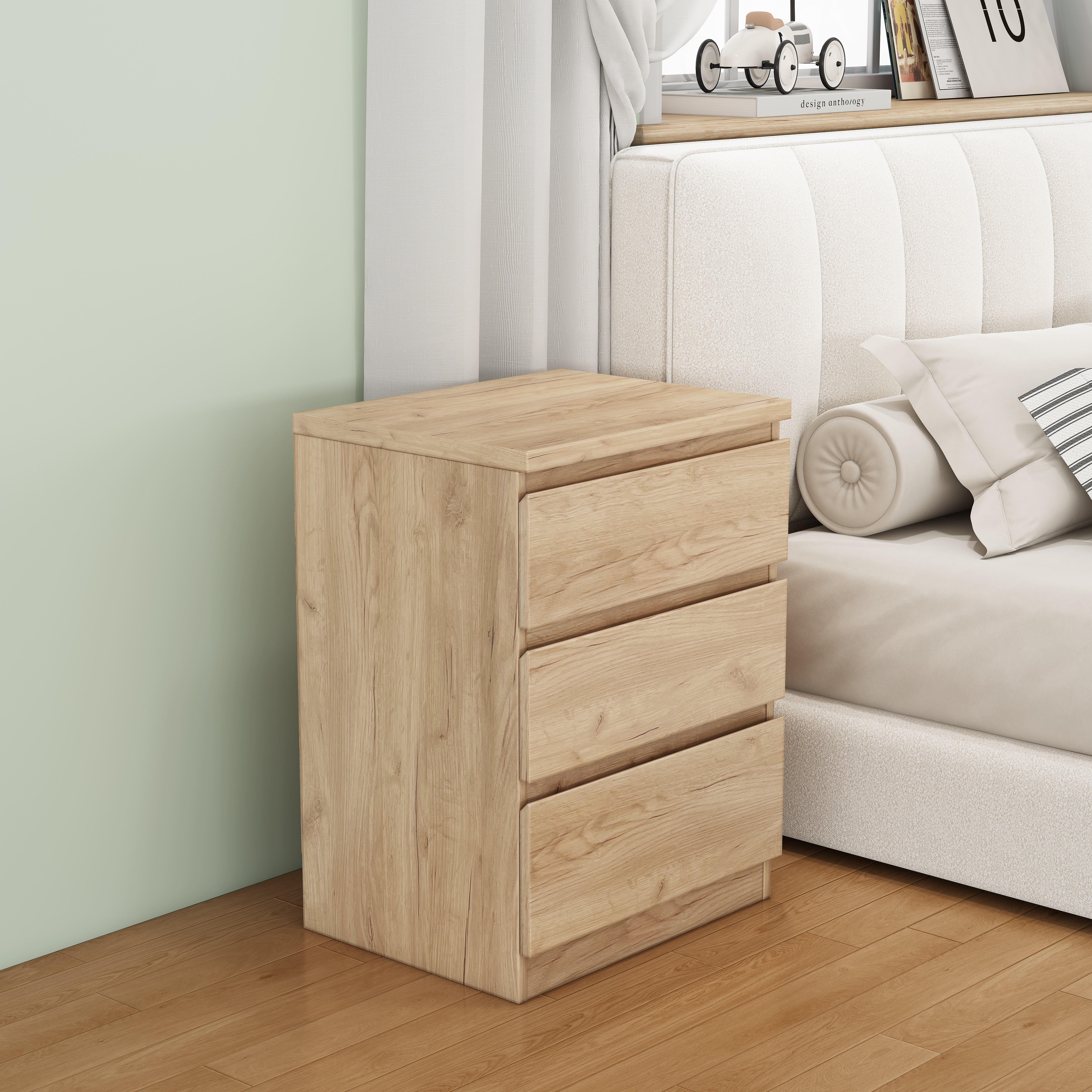 19.7-Inch Natural Nightstand With 3 Drawers, Beside Table With Drawers Handle Free Design,Thickened Top Plate,Small Side Table Storage Cabinet 3 Drawer Night Stand For Bedroom,Living Room
