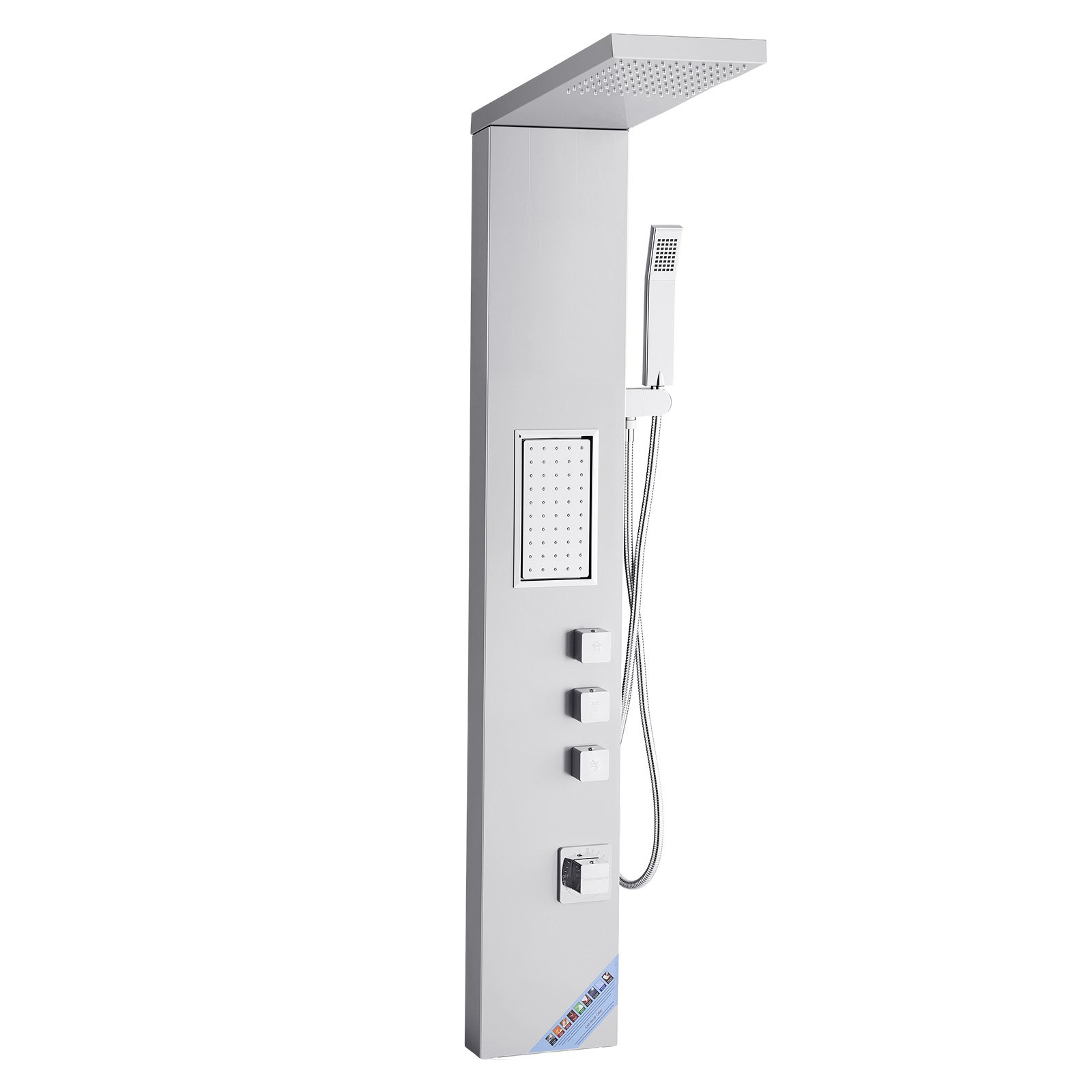 Shower Panel Tower System With Rainfall Shower Head, 53 In Brushed Stainless Steel Shower Column, 3-Function Faucet, High Pressure Wall-Mount Rain Massage System, With Large Body Jet, Handheld