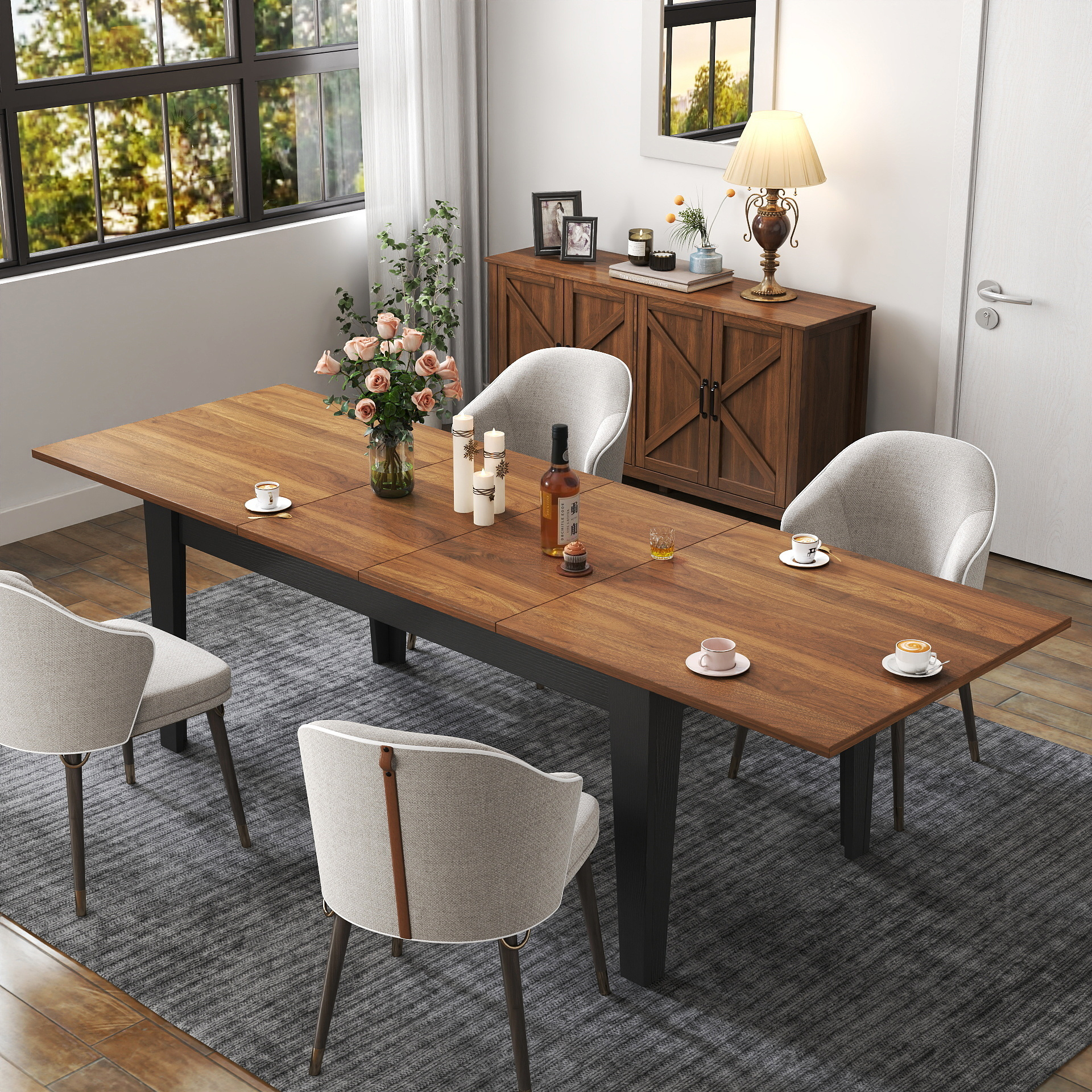 Dining Table,106.3 in Large Extendable Kitchen Table