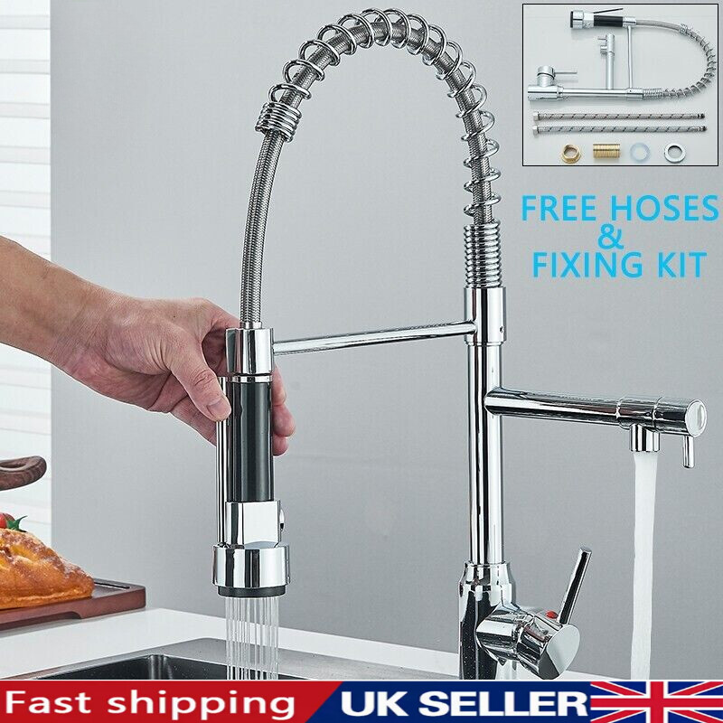 Modern Monobloc Pull Out Kitchen Mixer Tap Dual Spout Spray Single Lever Chrome