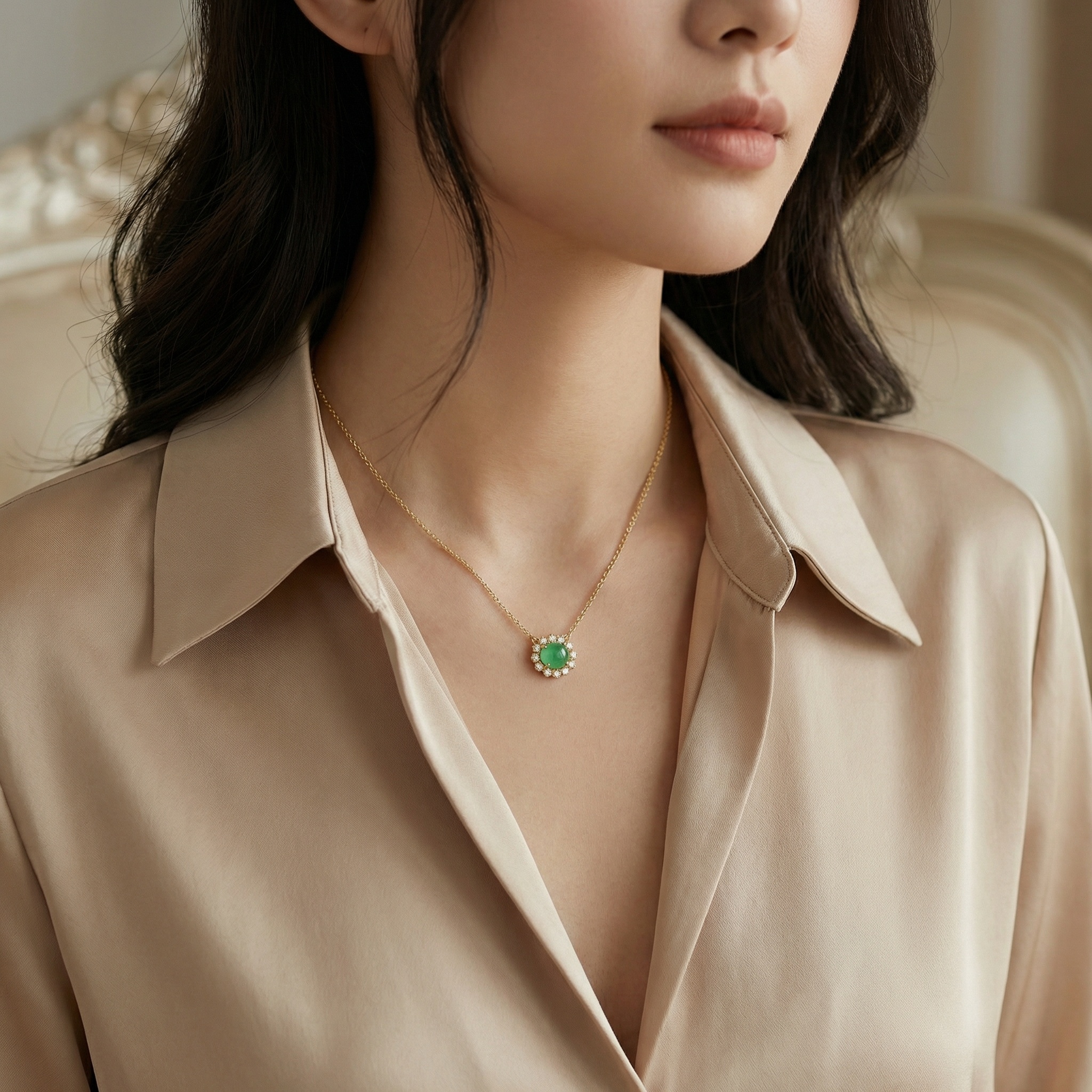 925 Sterling Silver Radiant Green Gemstone Pendant Necklace with a Sparkling Diamond Floral Halo