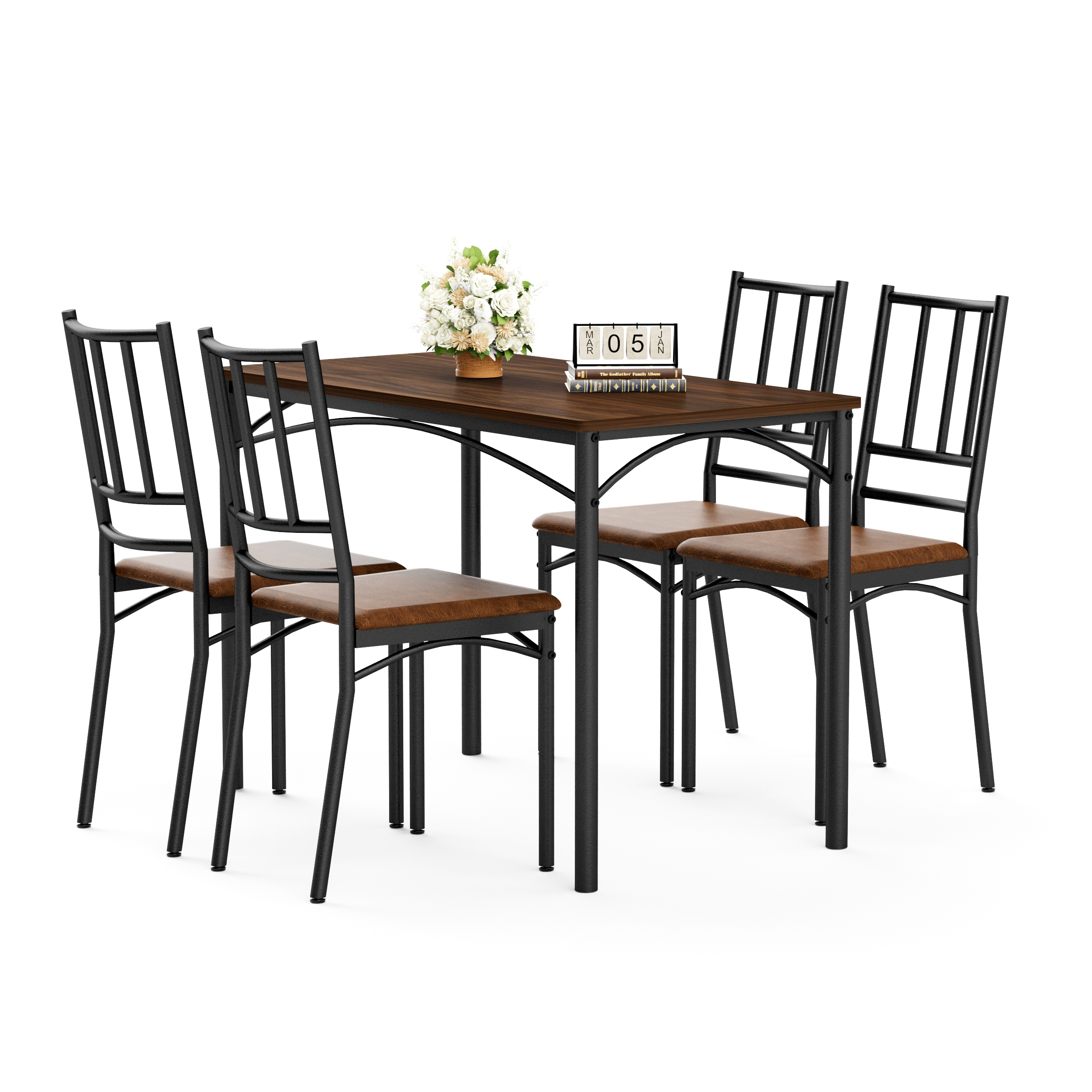 Dining Table Set, Bar Table With 4 Dining Benches, Kitchen Table Counter With Chairs, Industrial For Kitchen Breakfast Table, Living Room, Party Room, Walnut, 43.3L X23.6W X 30.1H