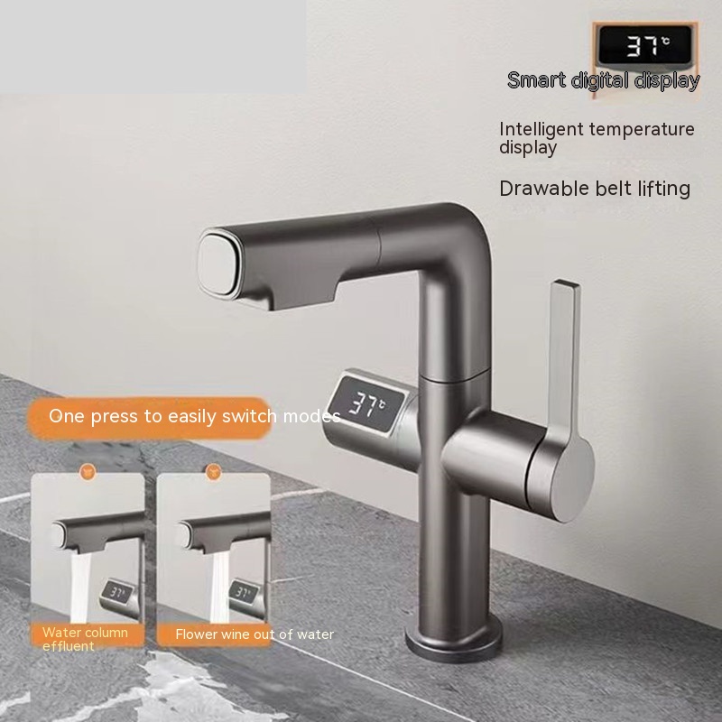 Gun Gray Basin Intelligent Temperature Display Washbasin Faucet