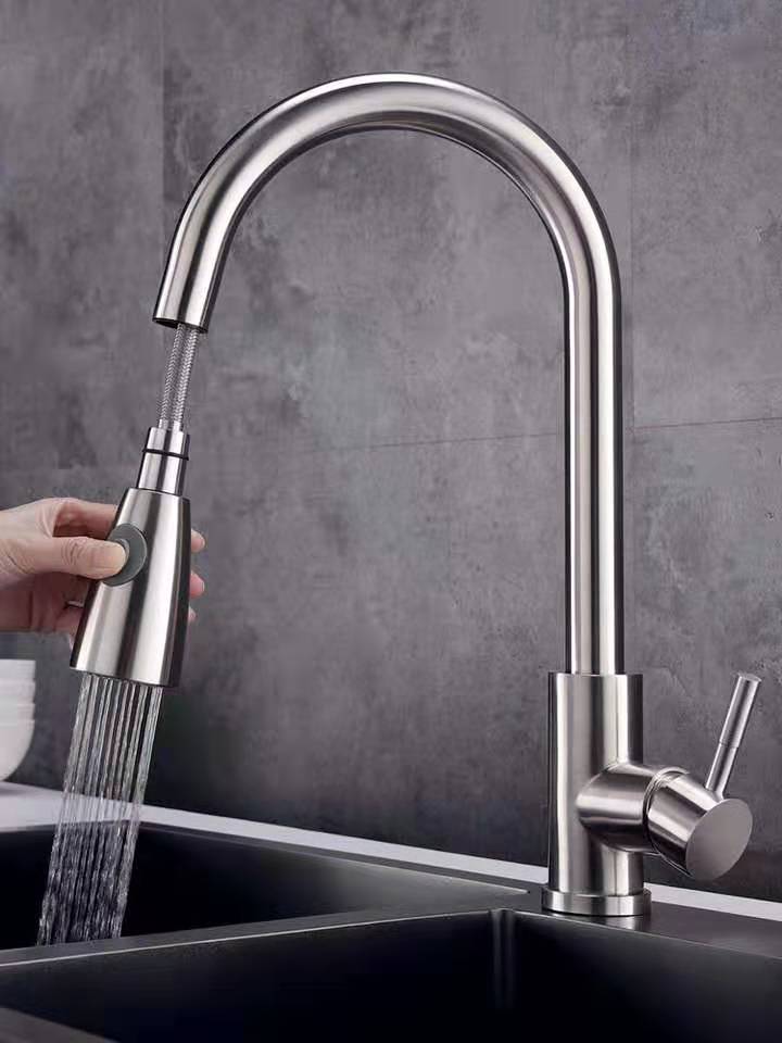 304 Stainless Steel Pull Hot And Cold Vegetable Basin Kitchen Faucet Sink 360 Plated Rotating