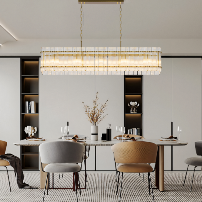 Modern Rectangular Crystal Glass Chandelier, 10-Lights Glod Chandelier Lighting Contemporary Pendant Ceiling Light Fixture For Dining Room Living Room Kitchen Island
