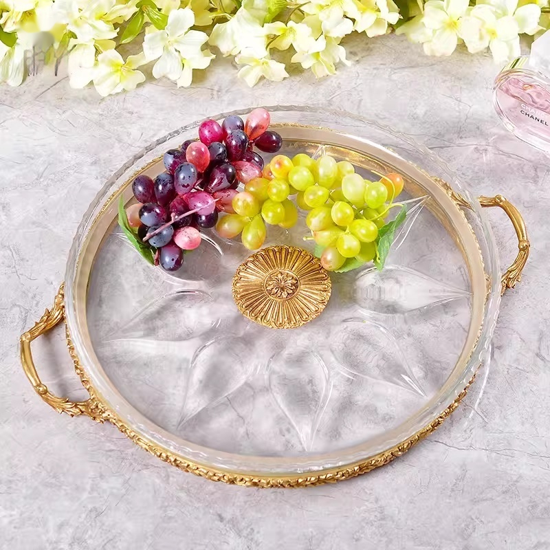 Brass Crystal Tray Featured Home Decor Item Round Ornament For The Coffee Table Perfect For Cups And Tea