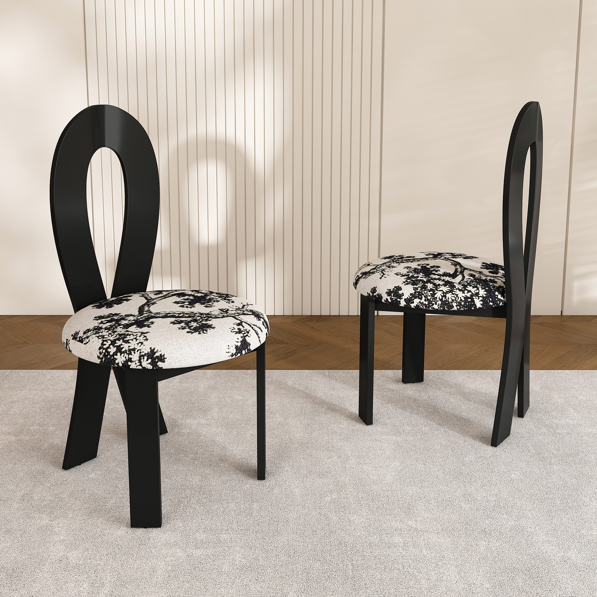 Dining Chairs Set Of 2 Key-Design Home Chairs - Linen Upholstered Solid Wooden Dining Chairs With White Round Cushion & Distinctive Wood Grain Texture For Kitchen Dining Room Black