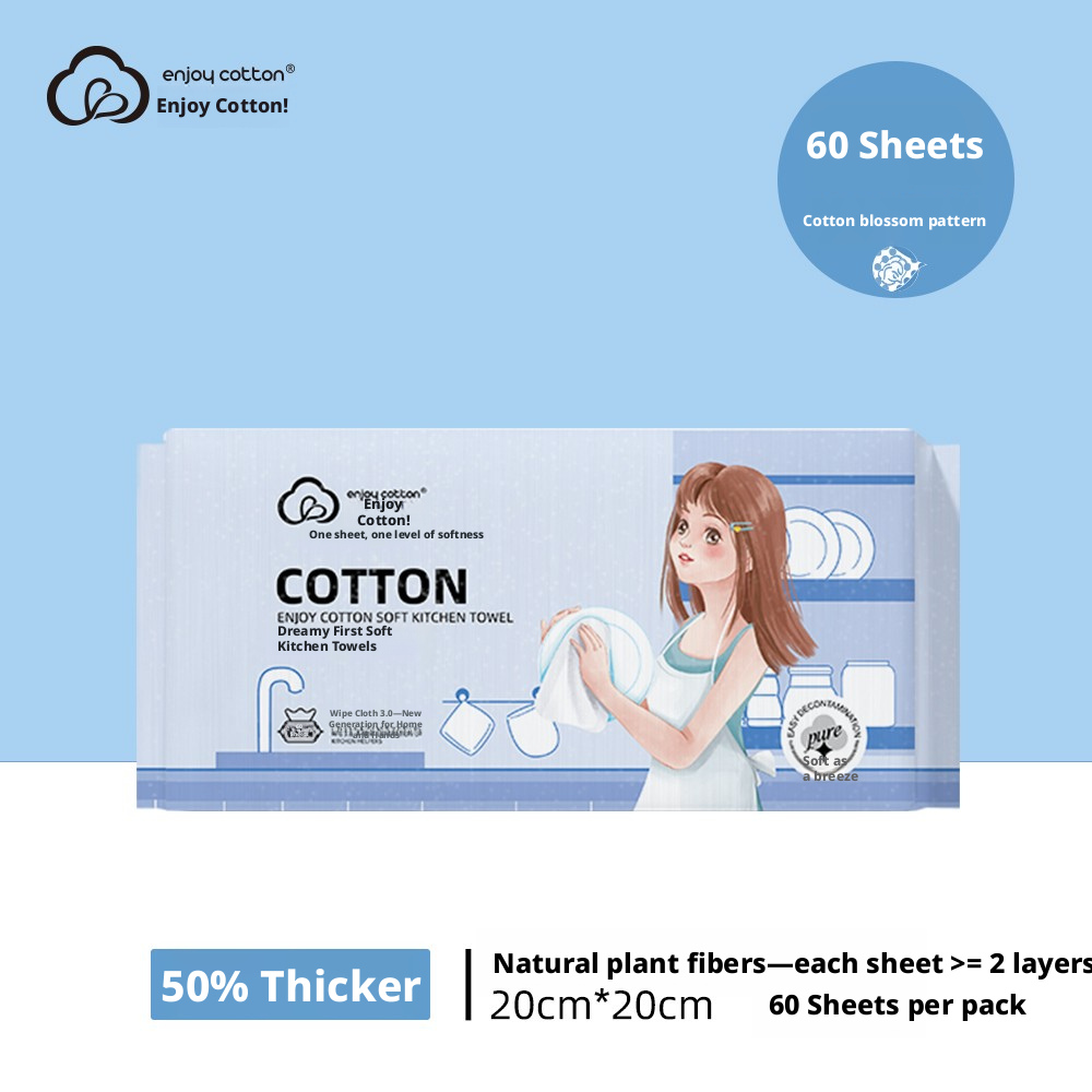 Kitchen cotton towel-removable-20cm * 20cm-60 pieces-1 pack