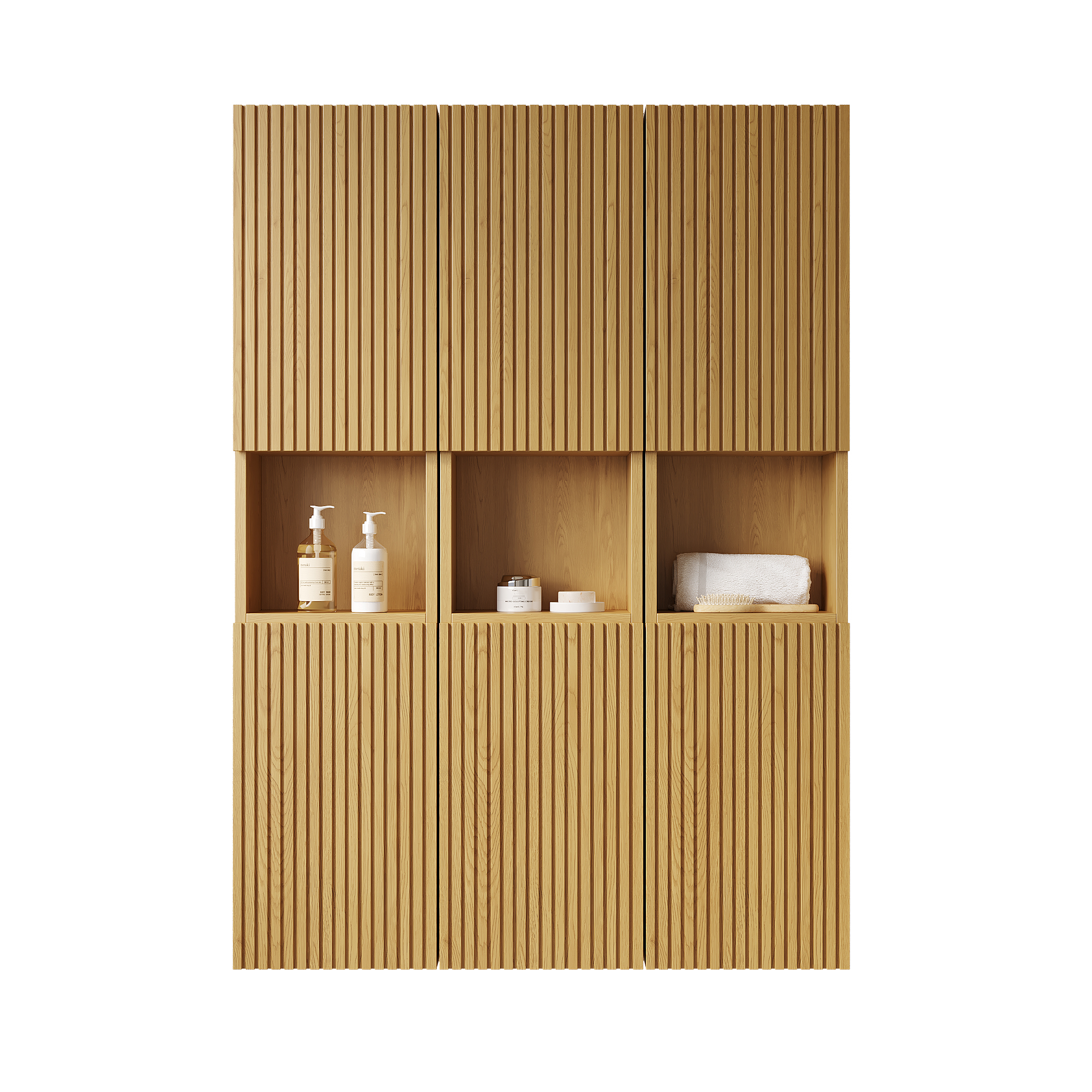MITCH 41 Bathroom Wall Mounted Cabinet, Composed Of 6 Cabinets With Doors, Can Be Used In Combination Or Individually, Suitable For Bathroom, Living Room, And Laundry, Corolla Oak Woodgrain Color