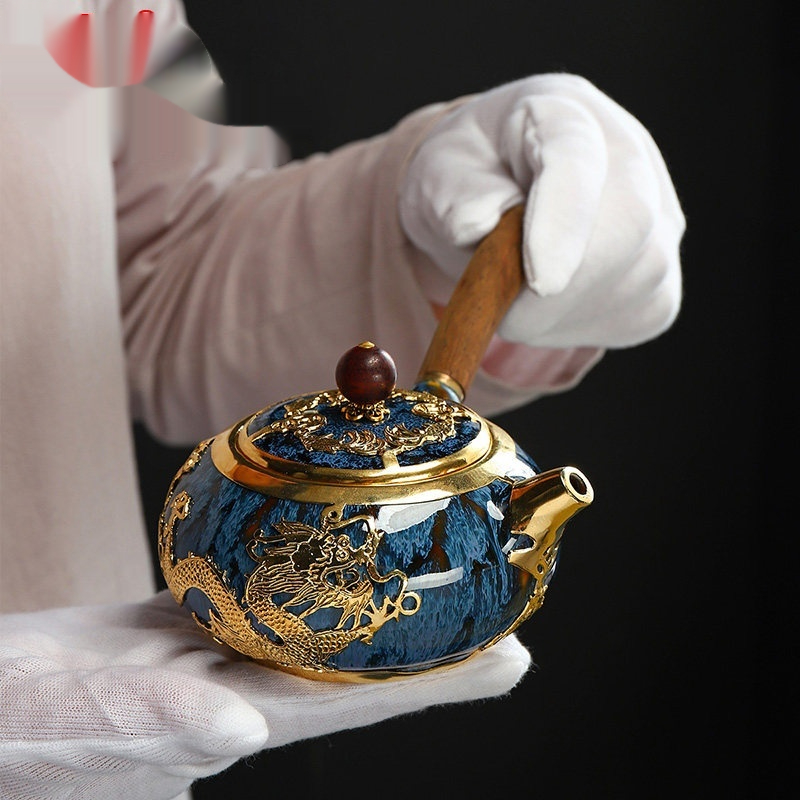 Gold-inlaid Jade Purely Handcrafted Gold-trimmed Gongfu Tea Set Ceramic Teapot For Brewing Tea Single Pot