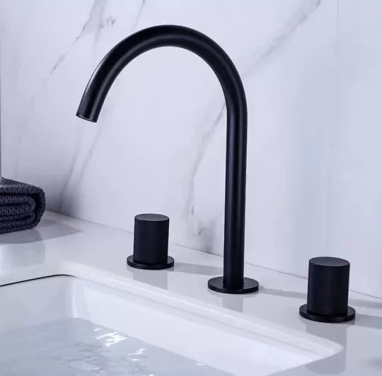 All-Copper Gunmetal Split Three-Hole Hot And Cold Water Faucet Set