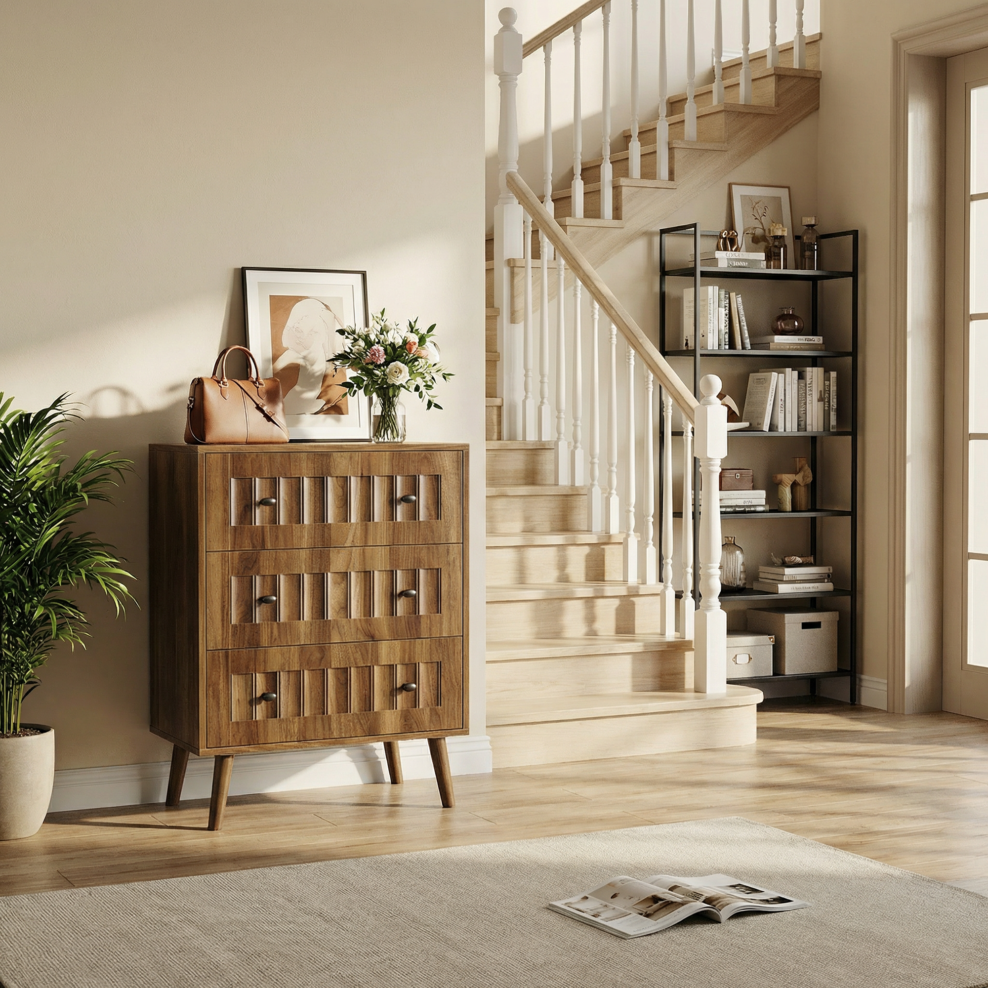 3 Drawer Dresser, Modern Wardrobe Dresser Chest Of Drawers, Wooden Storage Storage Cabinet, Dresser Storage Cabinet, Suitable For Living Room, Bedroom, Corridor Walnut