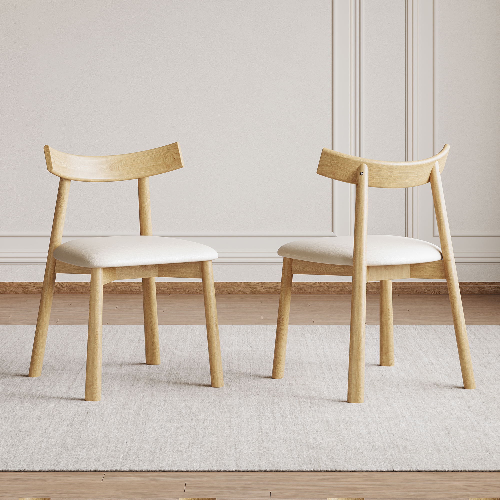Set Of 2 Modern Dining Chairs In Natural Wood Ergonomic Armless Kitchen Chairs With Thick Leather Cushions & Curved Backrest Sturdy Wooden Leg Chairs For Restaurant Cafe Bedroom