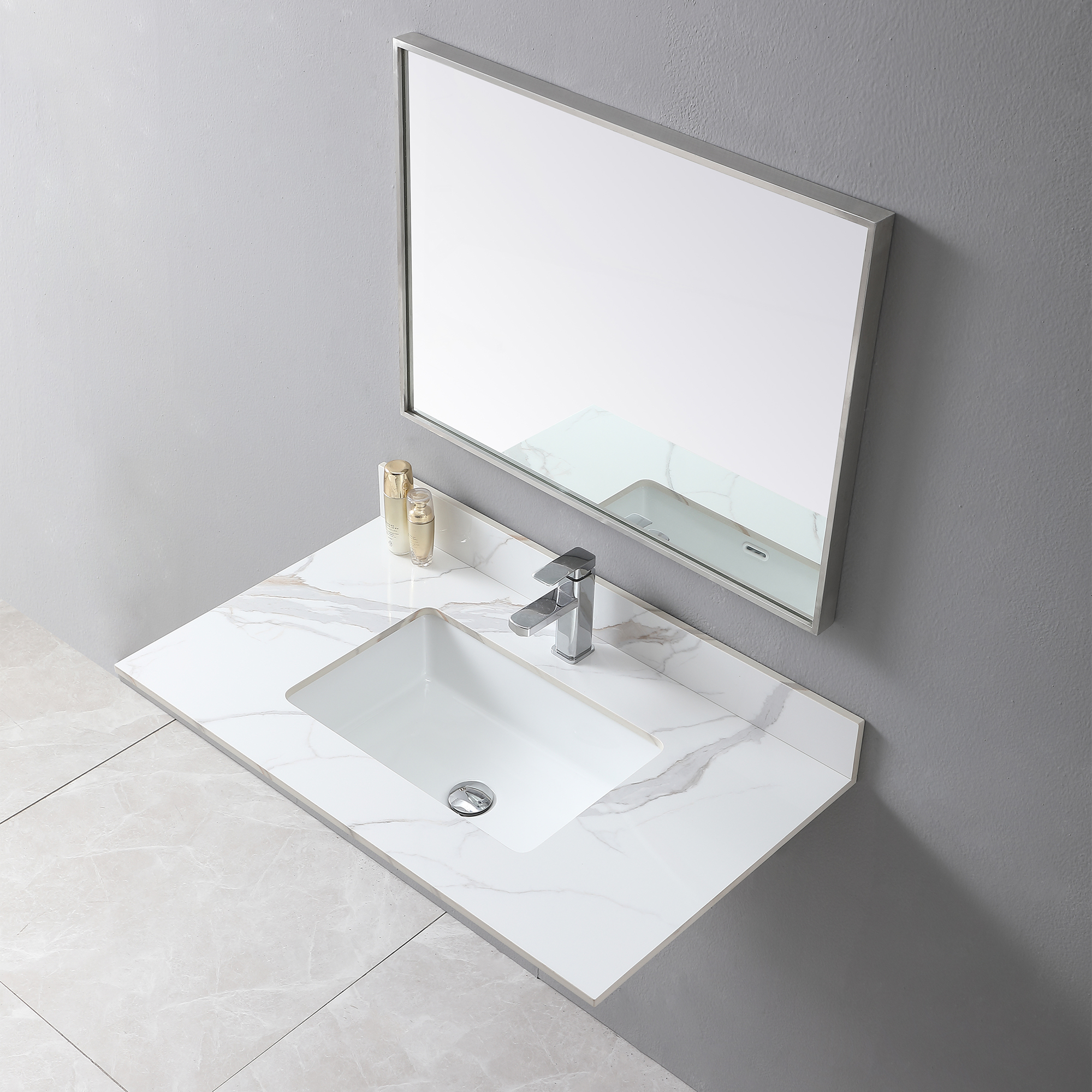 Montary 37inch Bathroom Vanity Top Stone Carrara Gold New Style Tops With Rectangle Undermount Ceramic Sink And Single Faucet Hole
