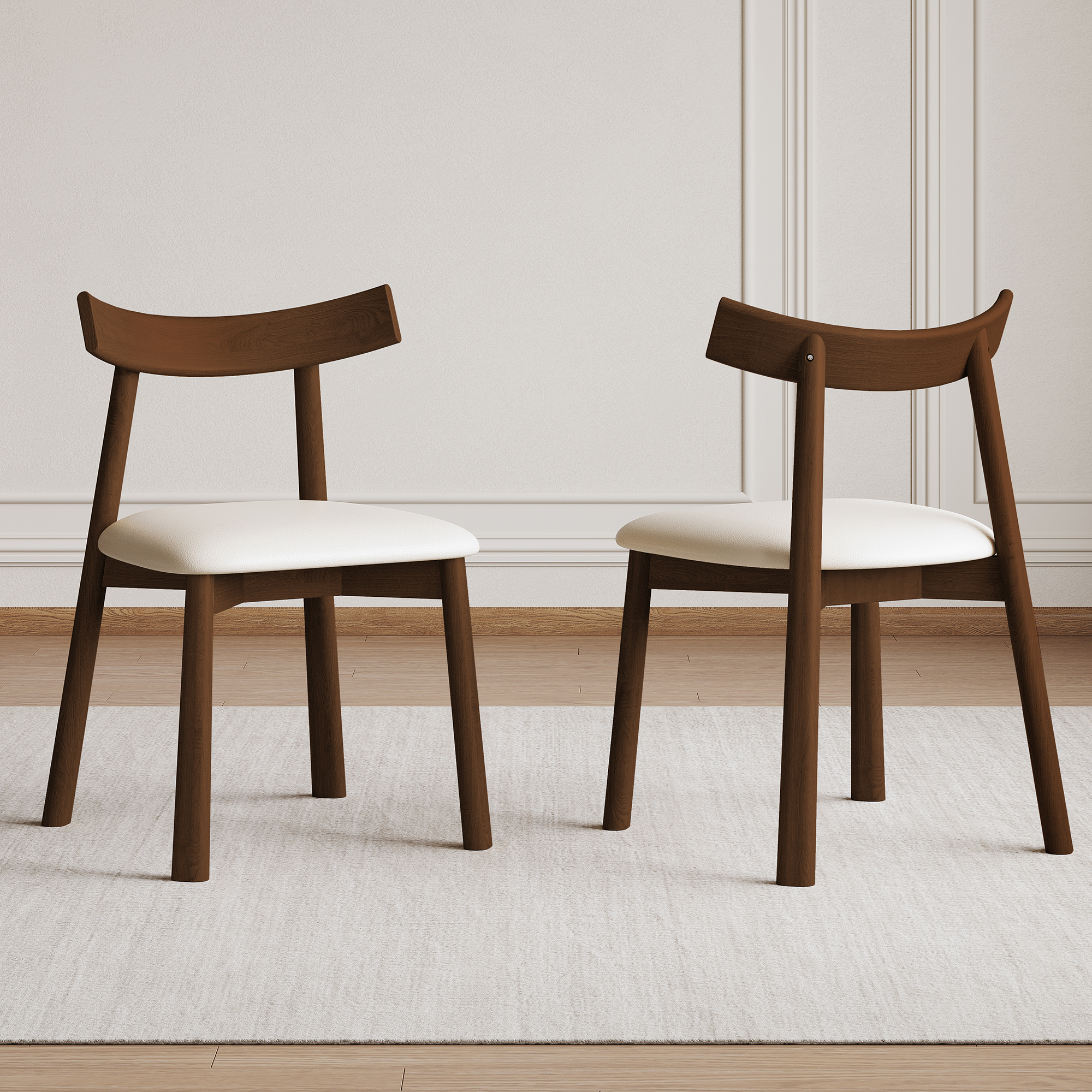 Set Of 2 Modern Dining Chairs In Walnut Finish Ergonomic Armless Kitchen Chairs With Thick Cushions Leather Upholstery & Sturdy Wooden Legs Curved Backrest Chairs For Restaurant Cafe Bedroom