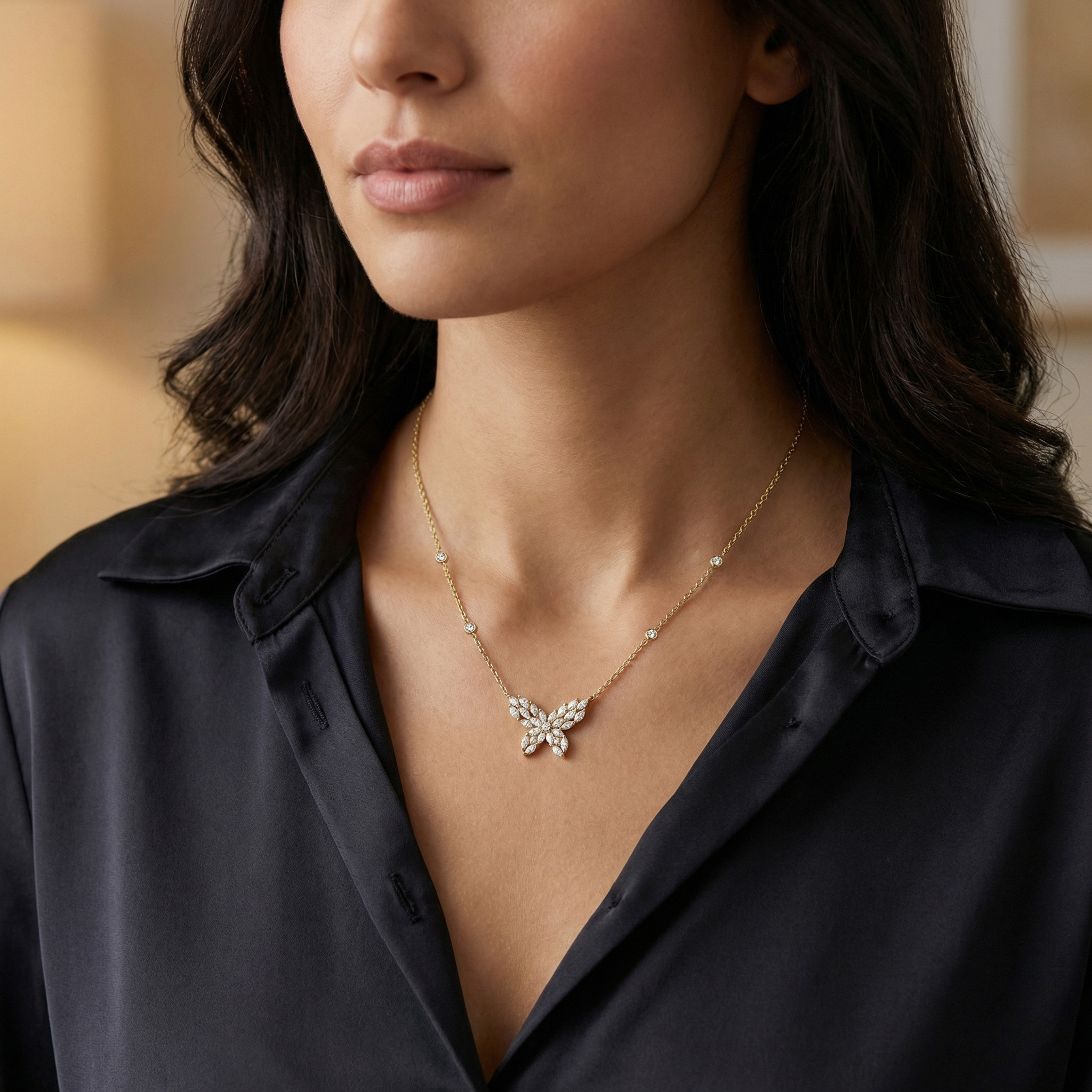 925 Sterling Silver Sparkling Marquise CZ Butterfly Pendant Necklace with Bezel Accents