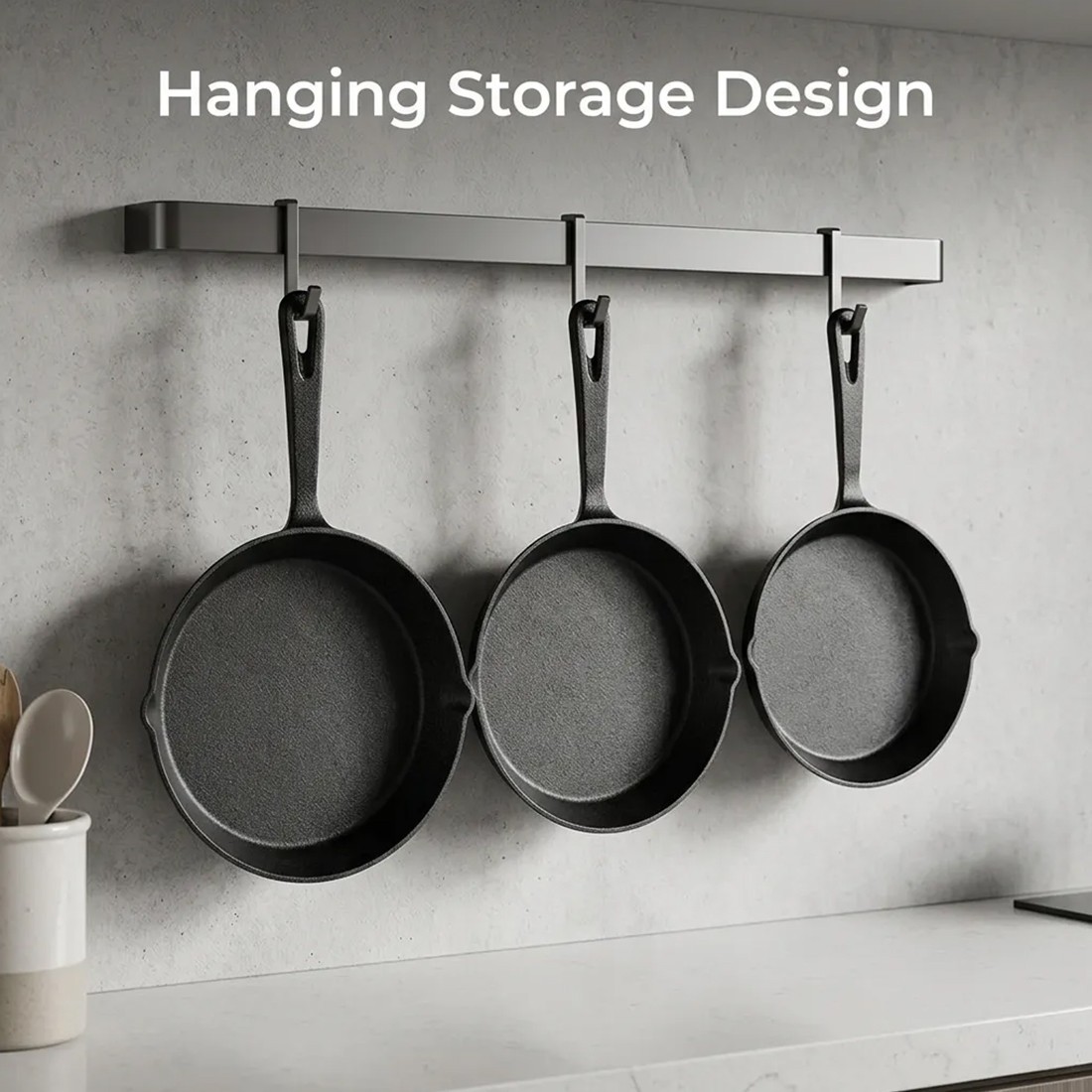 3pcs Pre-Seasoned Cast Iron Skillet Grill Pan With Handle For Grill, BBQ,Kitchen And Camping Cookware