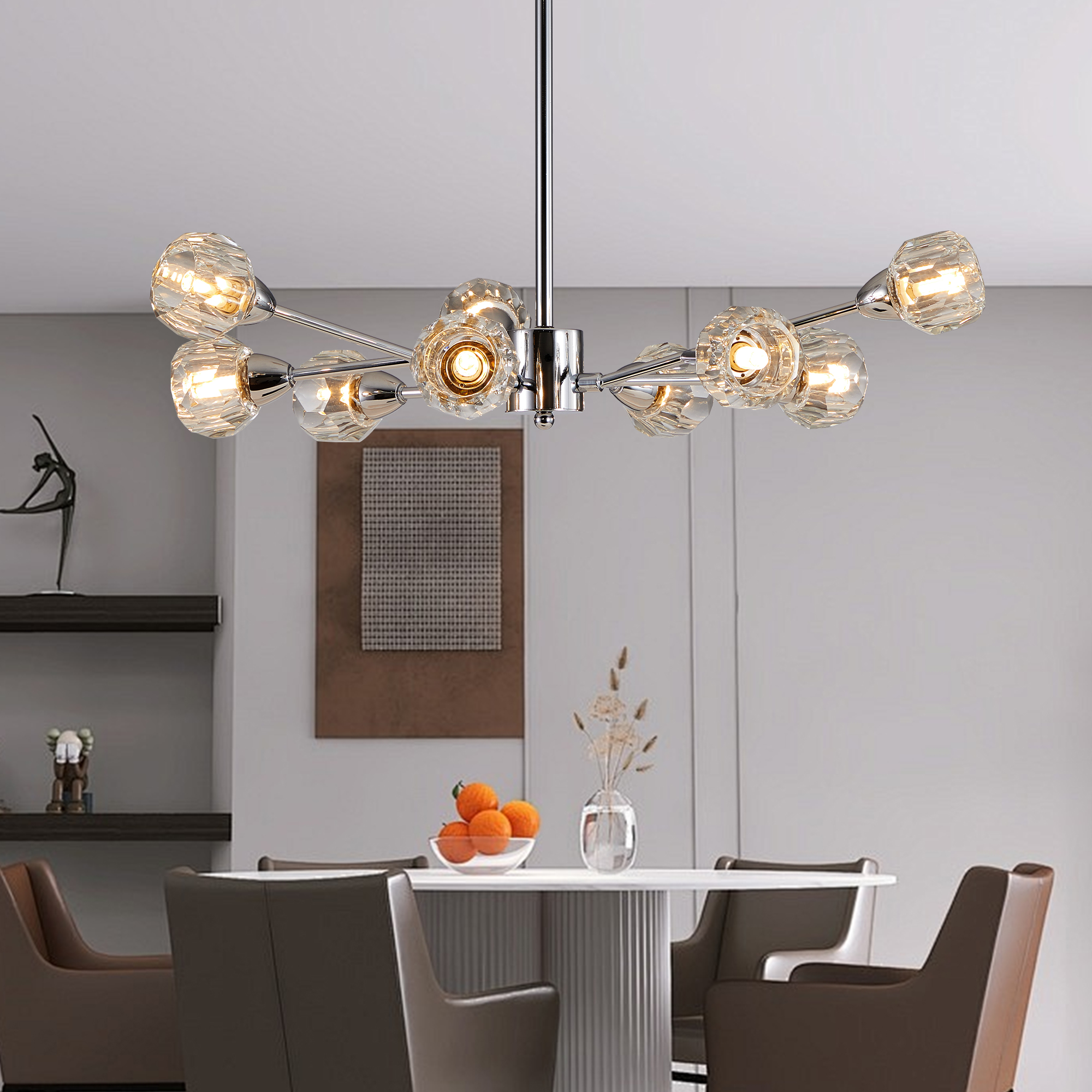 28 Modern Crystal Chandeliers, 9 Lights Chrome Chandelier For Living Room Bedroom, Dining Room Chandelier Over Table, Kitchen Light Fixtures Bulbs Not Included