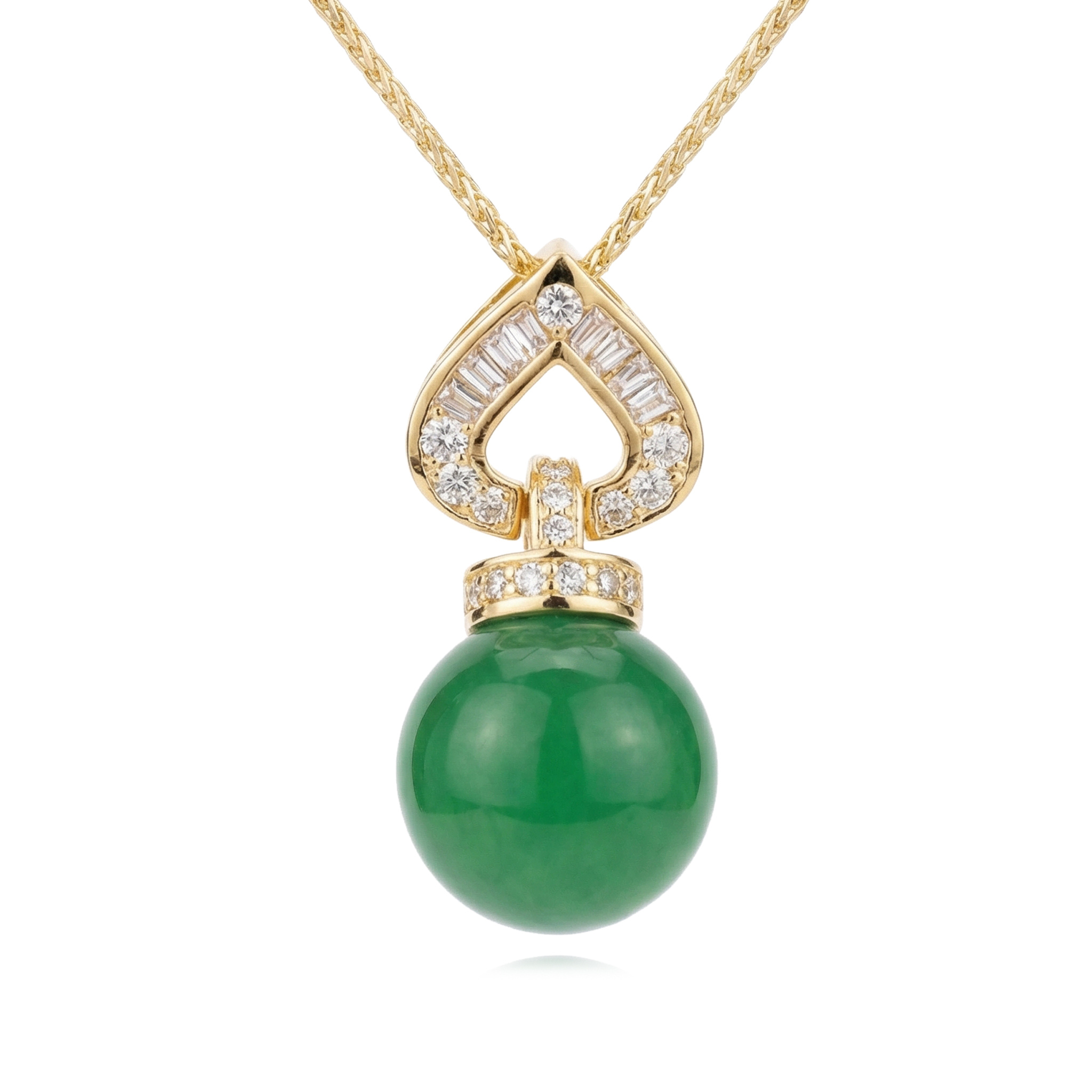 925 Sterling Silver Elegant Green Jade Sphere Pendant with CZ Accents