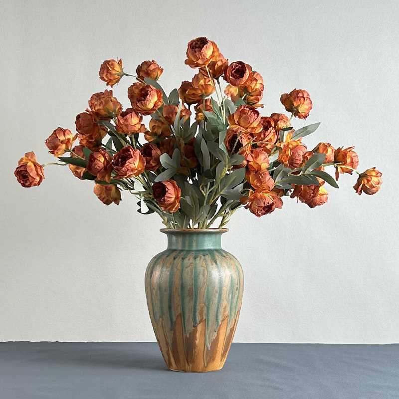 High-Temperature Ceramic Vase In Oil Painting Style For Dried Flowers Living Room