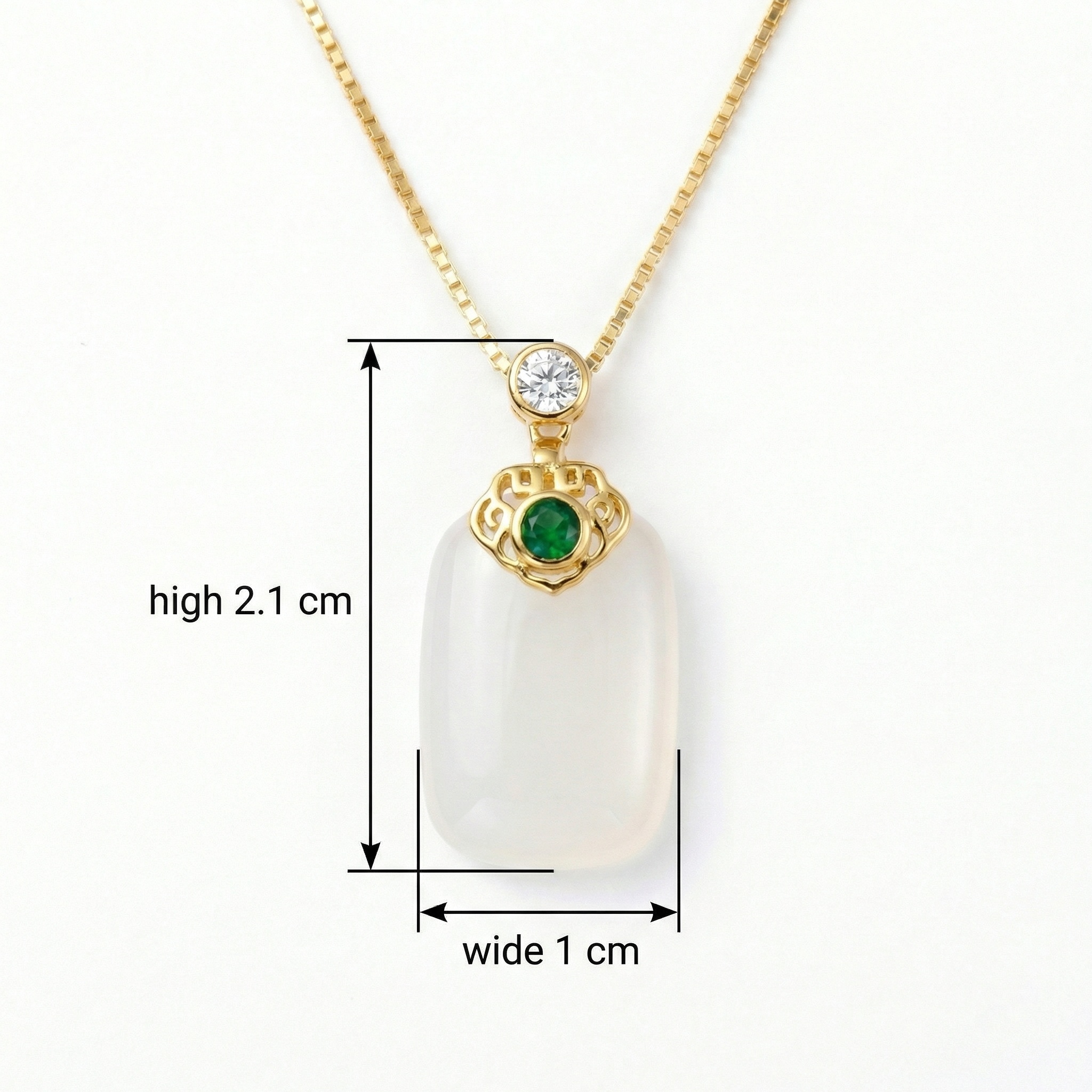 925 Sterling Silver Elegant Rectangular Translucent Stone Pendant with Vibrant Green and Shimmering Clear Gemstone Accents