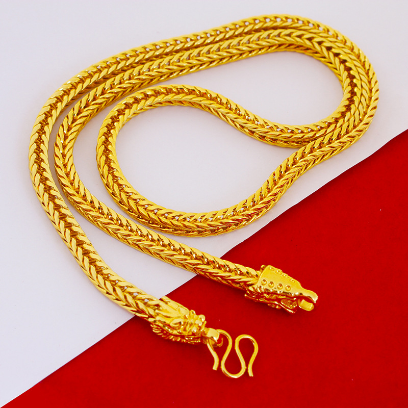 18K Gold Plated Faucet Fox Tail Necklace Men's Imitation Gold 6N Woven