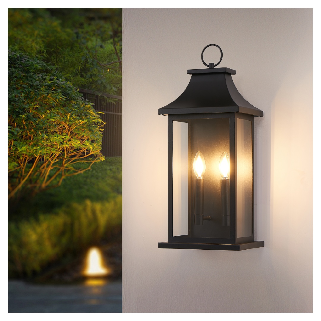 2-Pack Large Outdoor Wall Lights, 22IN Porch Light Outdoor Wall Sconce Lantern, Black Exterior Lighting Fixture Wall Mount, Outside Light For House Garage Bulb Not Included
