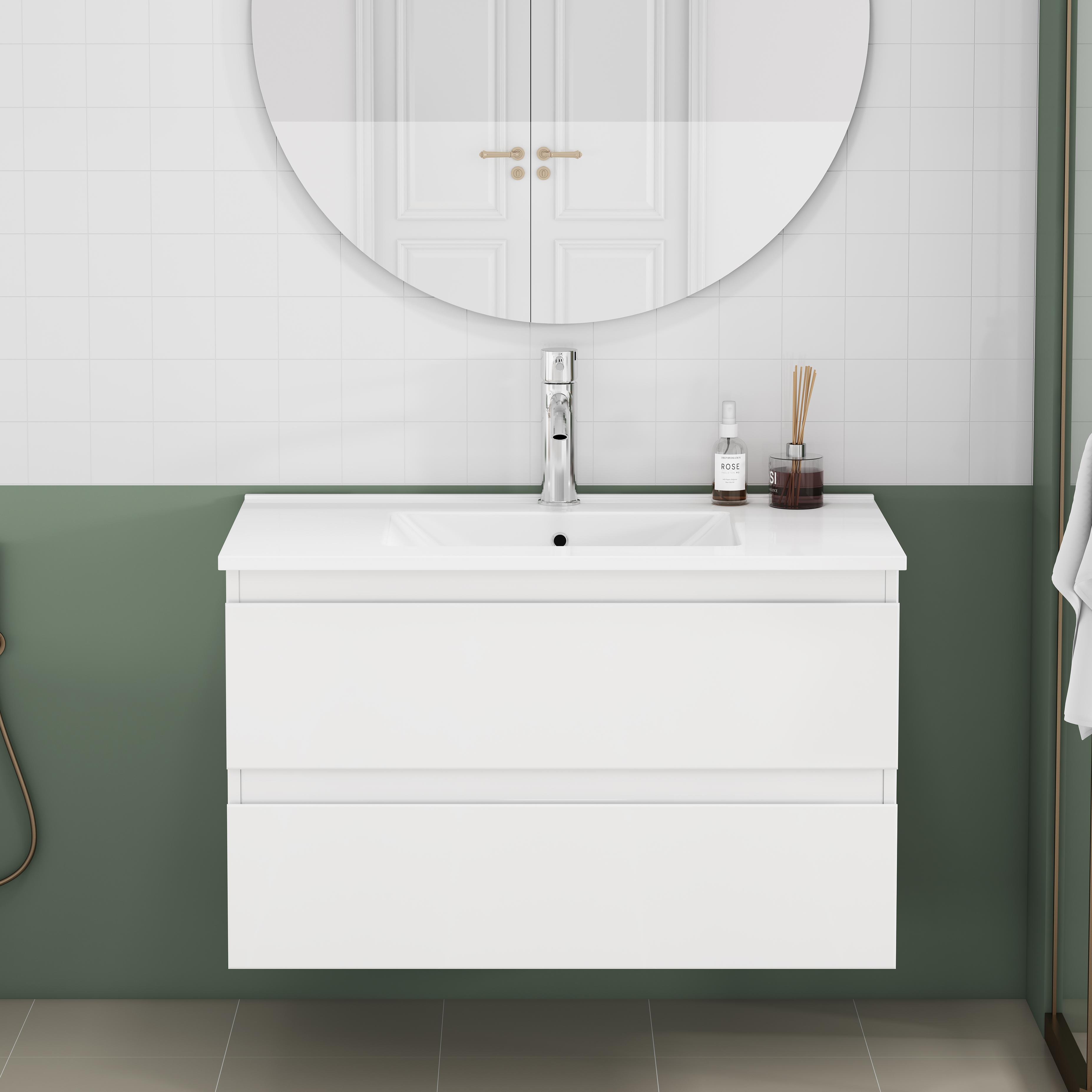 31.5-inch Bathroom Vanity With Sink Combo,Cabinet With 2 Big Drawers,Soft Close System,2 Big Drawers,Handle-Free Design,Easy Assemble,Glossy White