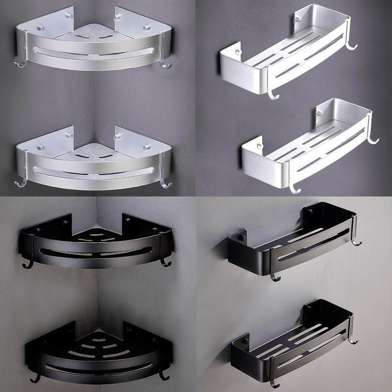 Free punching bathroom shelf Bathroom with hook corner frame Toilet vanity space aluminum triangle basket wall hanging