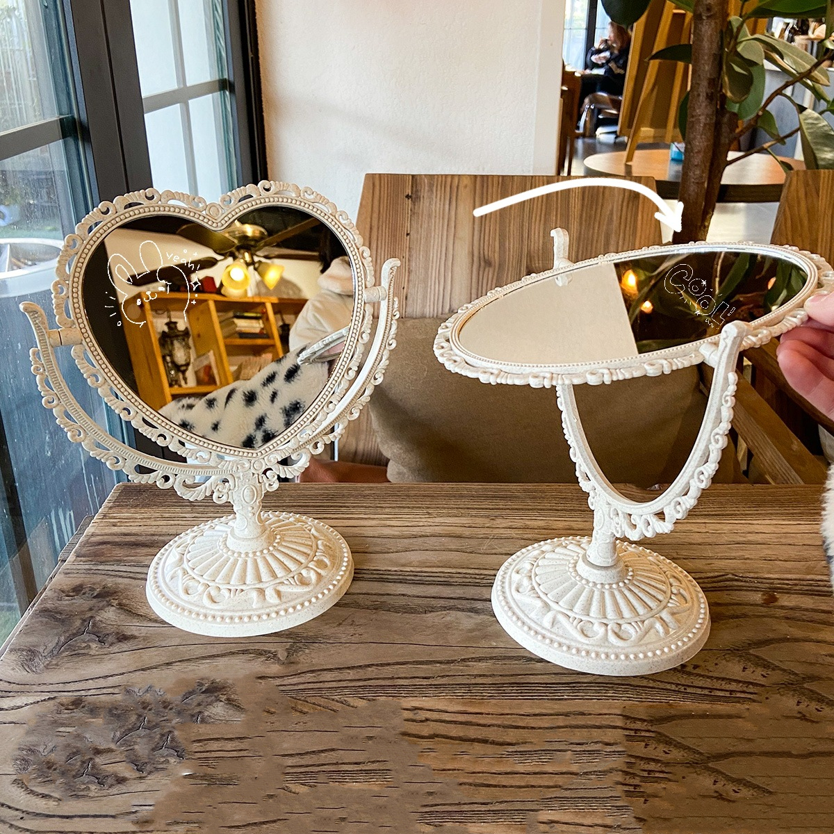 Retro Style Double Sided Desktop Heart Shaped Vanity Mirror