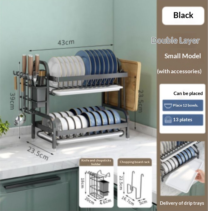 Only Self Pickup--Two Layers Of Black Kitchen Shelf, Dish Rack, Bowl And Plate Storage Rack, Draining Rack, Household Multi-functional Bowl And Chopsticks Storage Shelf