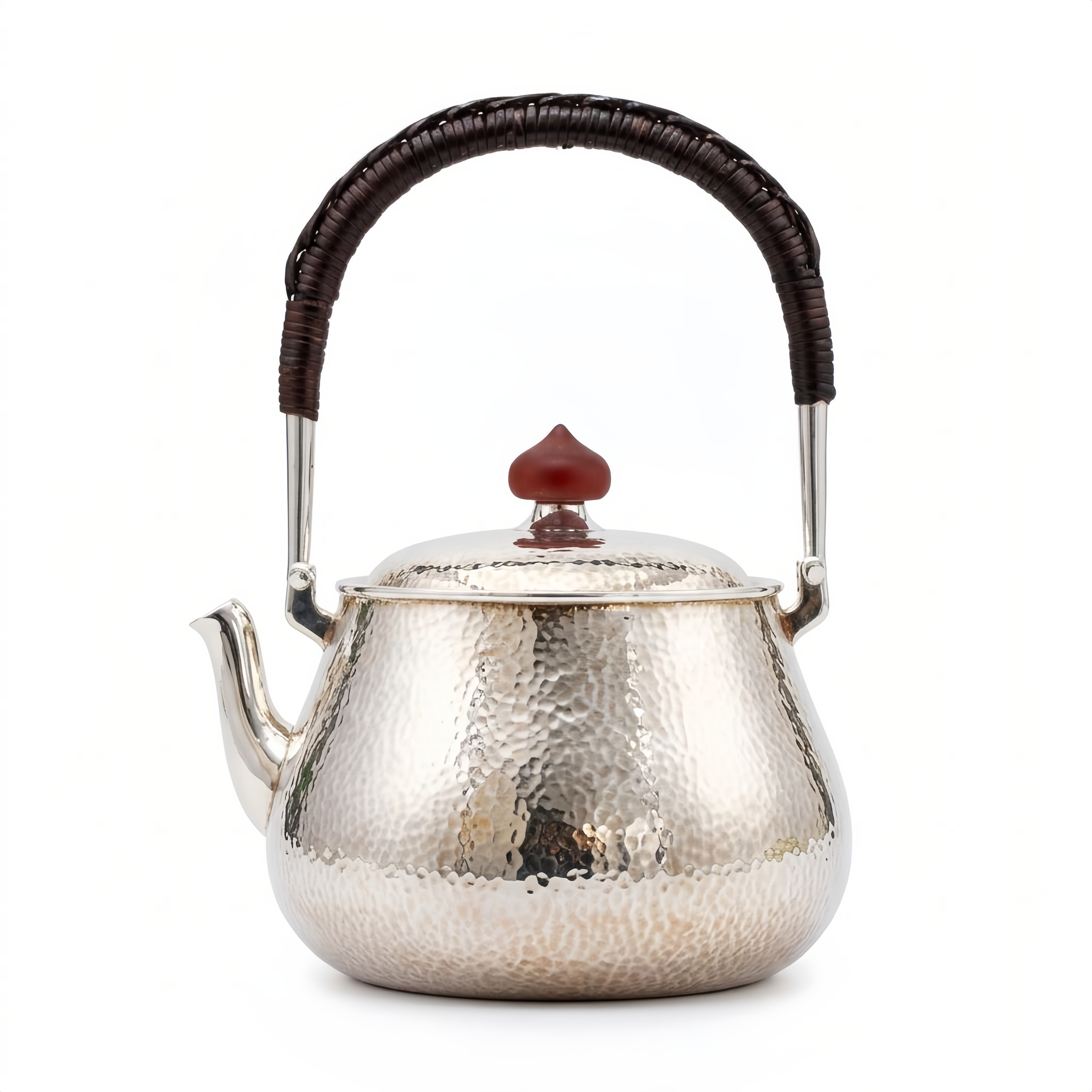 925 Sterling Silver Handcrafted Hammered Teapot with Bamboo Handle-Fine Teapot with Handle - Handicraft