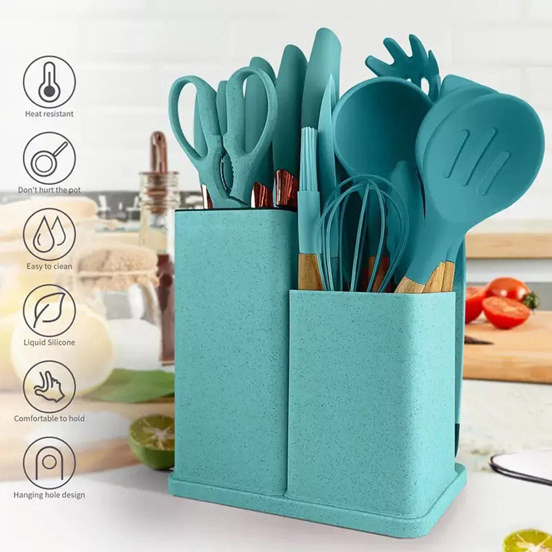 19pcs Set Non-Stick Silicone Kitchen Utensil Spatula Spoon Cooking Cookware Gift