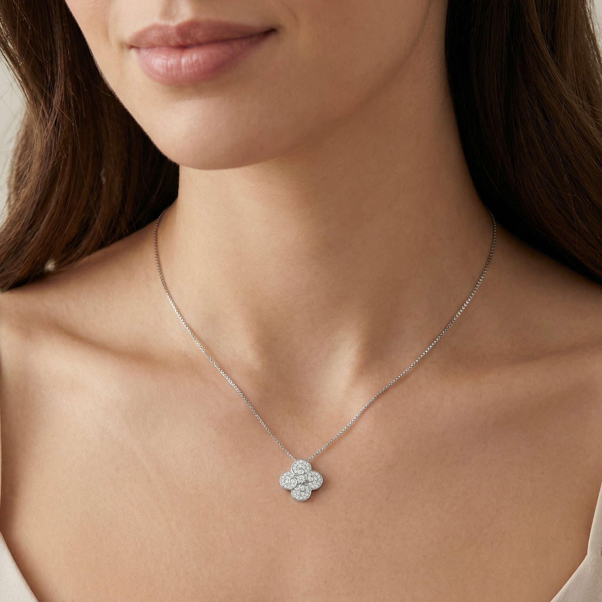 925 Sterling Silver Sparkling Diamond-Accented Floral Swirl Pendant Necklace in Polished Sterling Silver