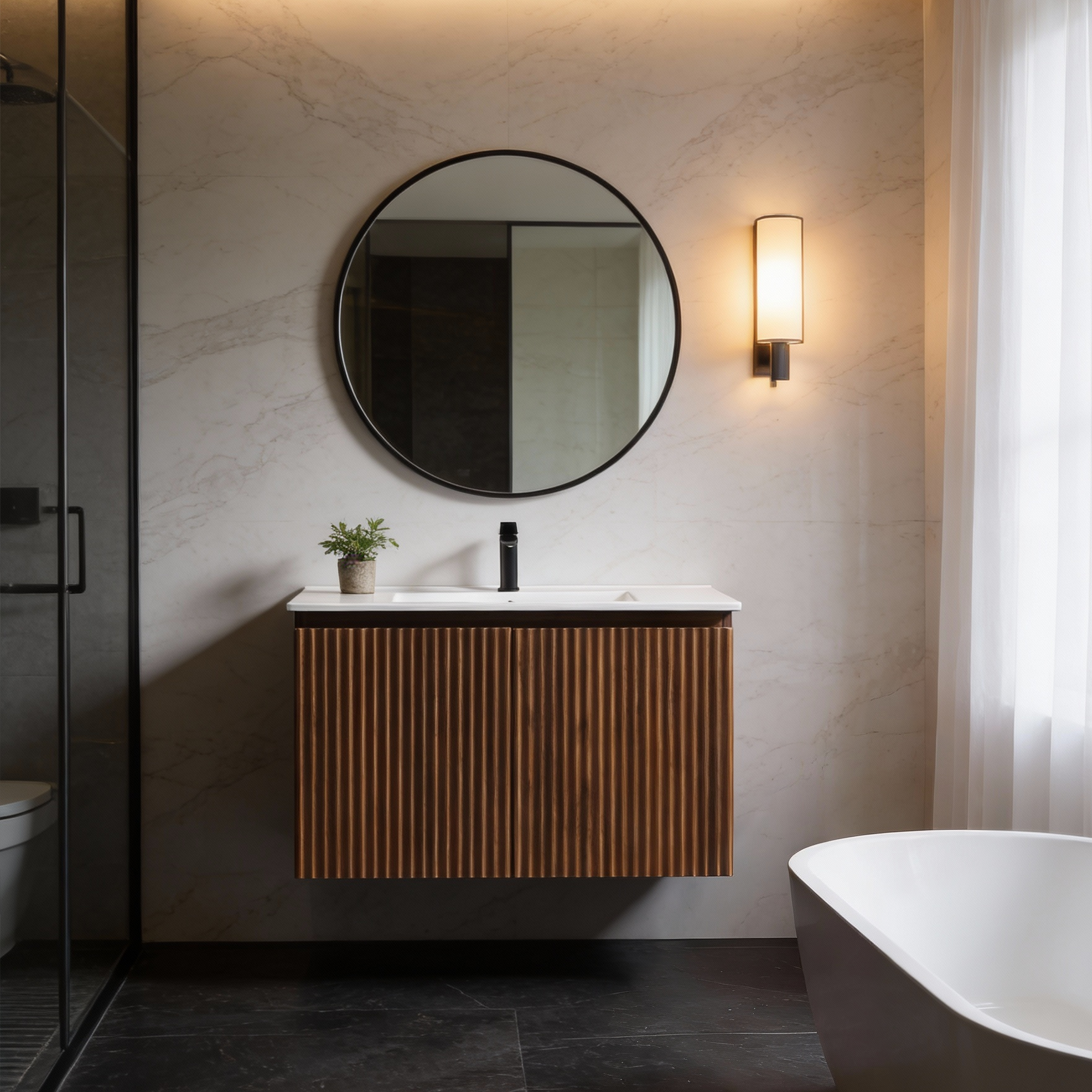 30inch Walnut Folding Wall Cabinet With Creamic Sink- Patented 1-Minute Install Space-Saving & Easy Assemble Modern Style