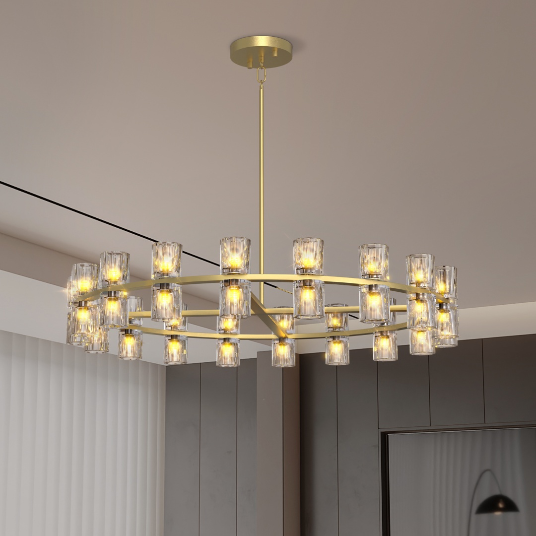 Modern 36in Gold Round Chandelier Light Fixture, K9 Crystal Chandeliers For Dining Room, Living Room, Dining Room Chandeliers Over Table, Chandelier For Bedroom, Foyer, Includes 36XG4 Bulbs