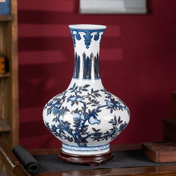 Antique-style Blue-and-White Porcelain Living Room Bookshelf Flower Arrangement Decorative Ornaments