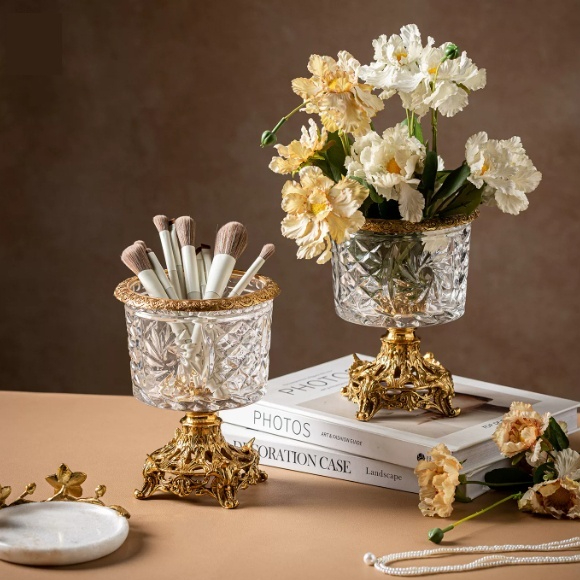 Crystal Glass And Brass Storage Vase Candle Holder