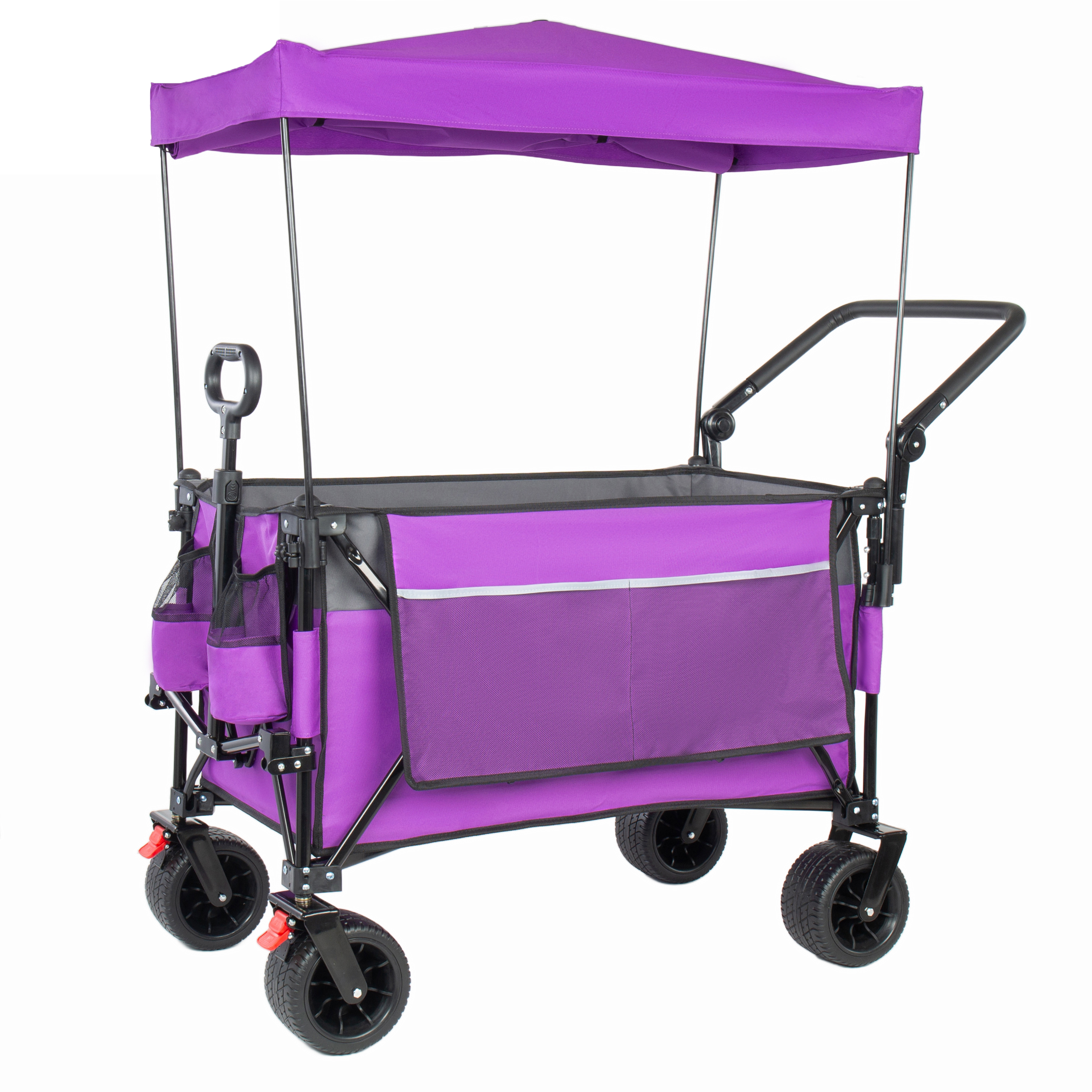 Multi-Functional Push-Pull Folding Wagon Cart With Rotating Handle & Canopy 7x4All- Terrain Wheels & Brakes Load Capacity 480lbs 300L Large Capacity For Transport Groceries Outdoor Use Purple