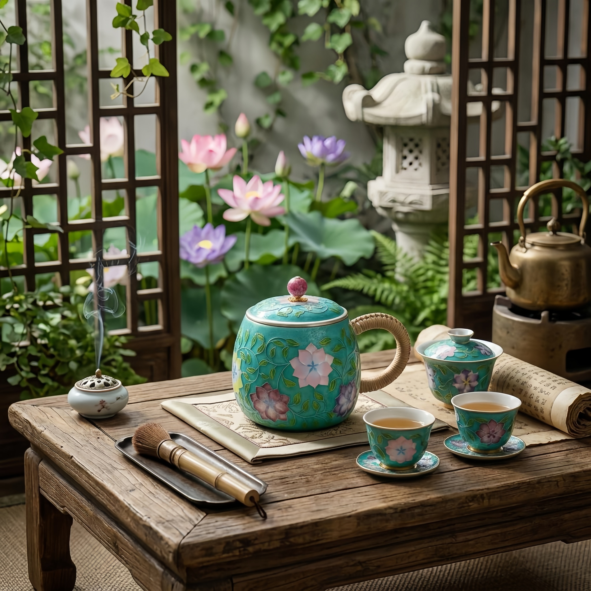 925 Sterling Silver Elegant Turquoise Cloisonné Floral Mug with Woven Handle and Matching Lid - Handicraft