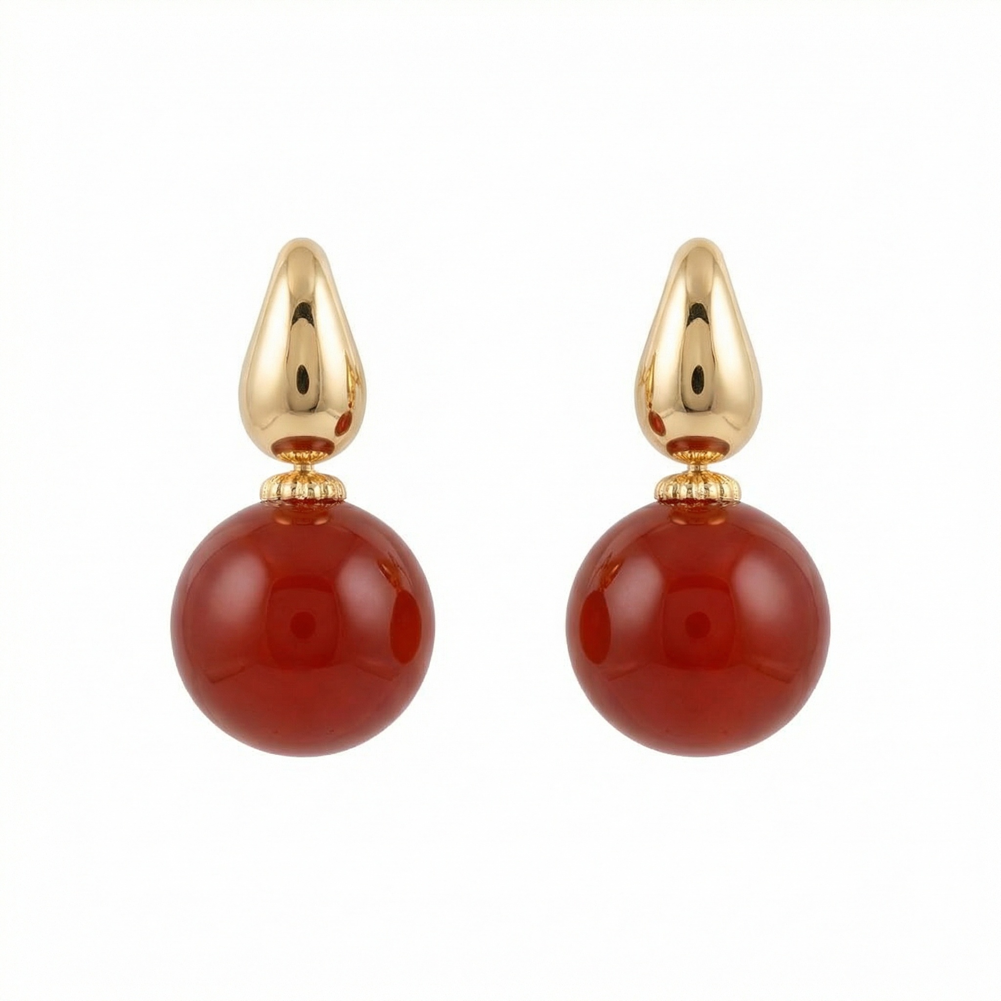 925 Sterling Silver Elegant Red Carnelian Sphere and Polished Metallic Teardrop Drop Earrings