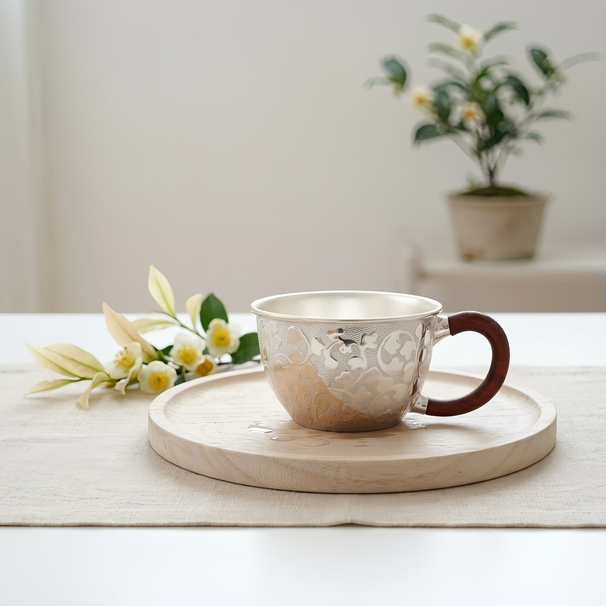 925 Sterling Silver Elegant Cup with Wooden Handle: Classic Craftsmanship Meets Modern Design-Premium Master Cup - Handicraft