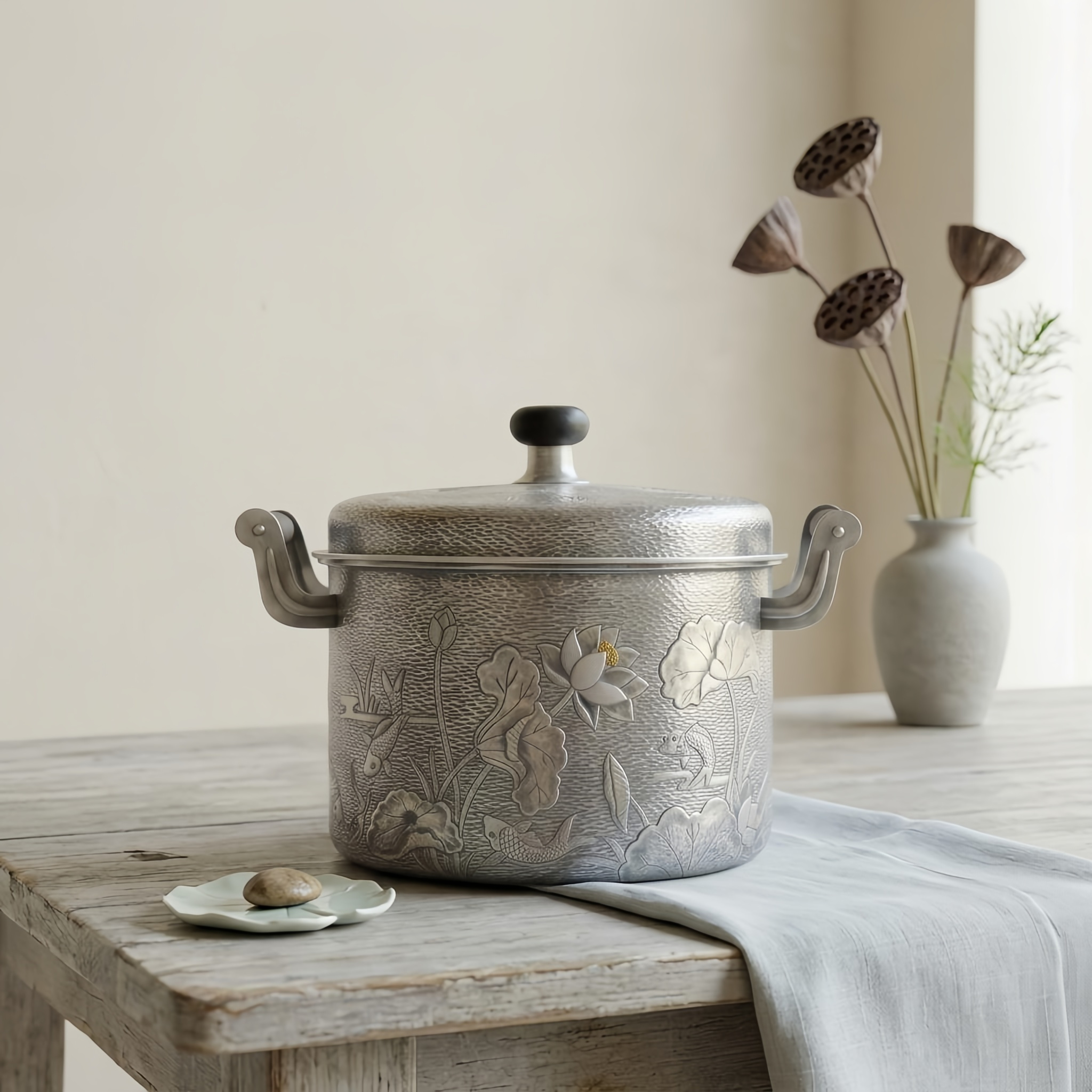925 Sterling Silver Elegant Lotus Fish Pot with Artistic Engraving-Premium Hot Pot - Handicraft