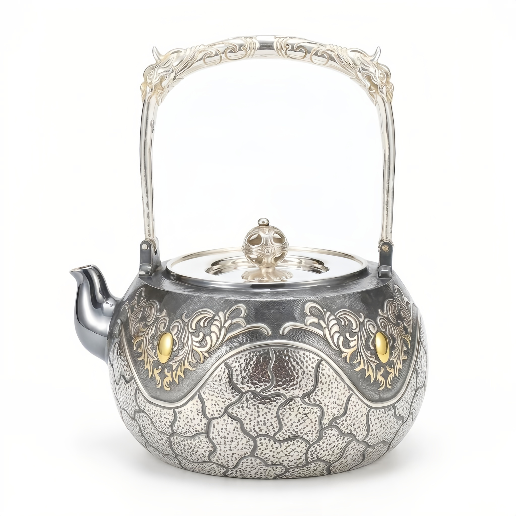 925 Sterling Silver Handcrafted Ornate Silver Teapot with Intricate Engravings and a High Decorative Arched Handle - Handicraft