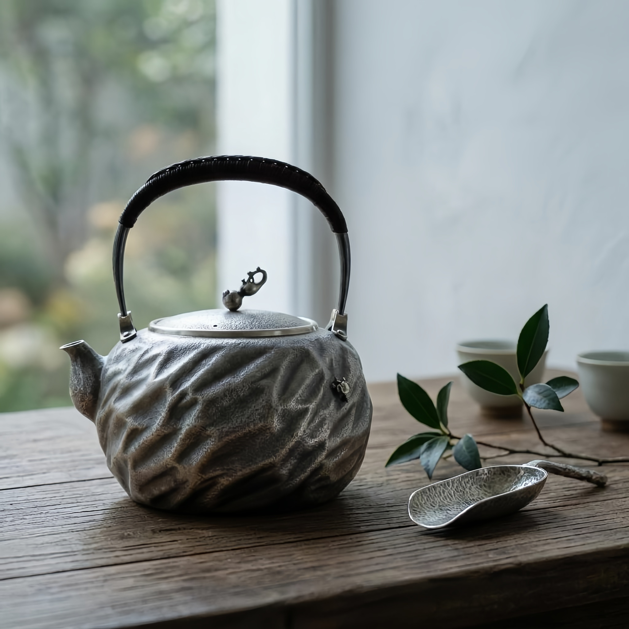925 Sterling Silver Handcrafted Hammered Metal Teapot with Bamboo Handle and Artisanal Design-Fine large teapot - Handicraft